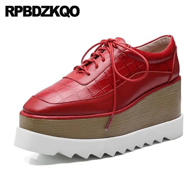 wedge red oxford square toe pumps creepers handmade high heels harajuku snakeskin women platform shoes fashion 2018 lace up